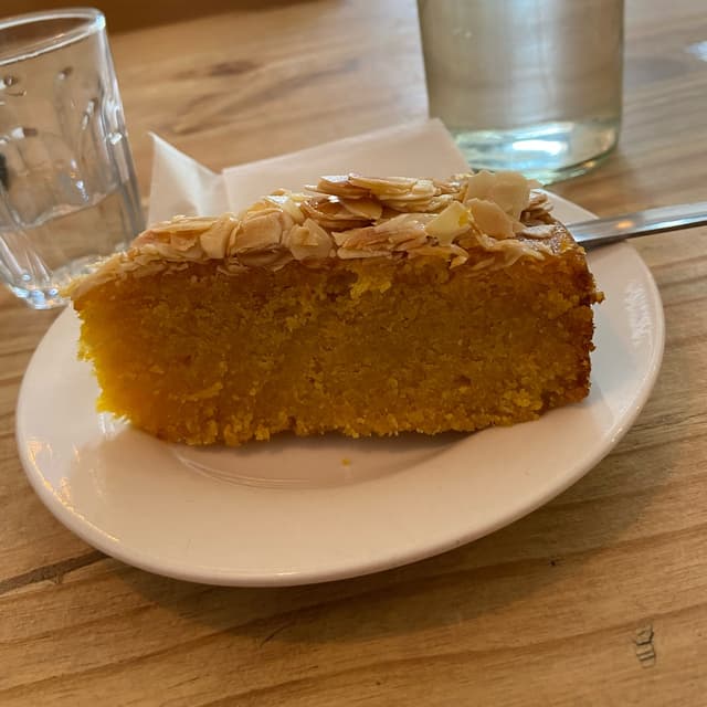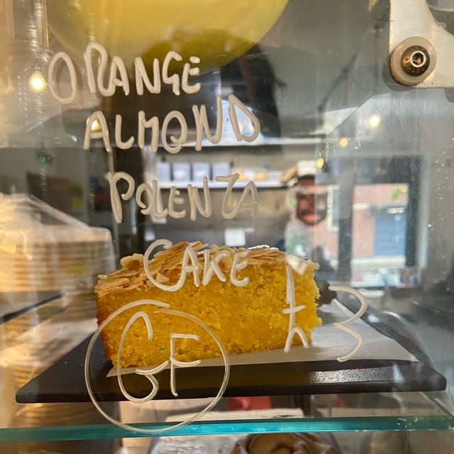 Beautiful slice of cake for tea. Gluten free, not too heavy or overly sweet, and well tasty. For 3 quid.