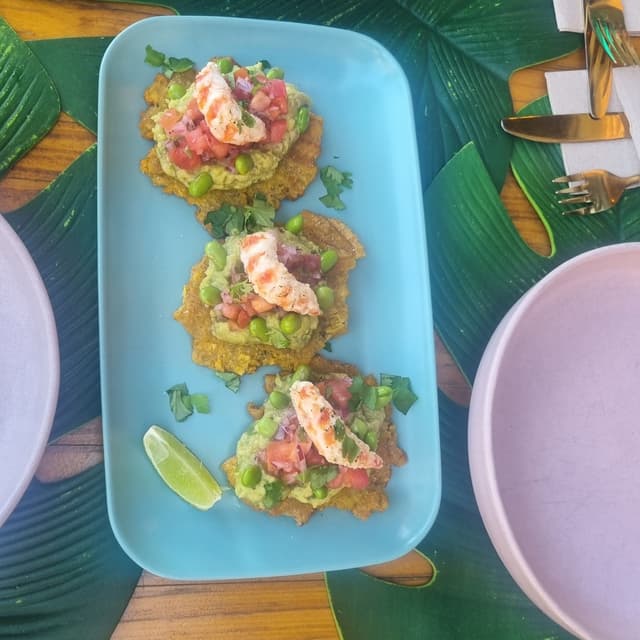 Non vedo l'ora di tornare per provare tutto quello che ero troppo piena per provare 'stavolta! I "patacones" sono stati una graditissima sorpresa. Sono 3 pezzi per portata e sono deliziosi. Questo ristorante ha ampia scelta vegan ed è tutto originale, fresco e saporito. Straconsiglio!