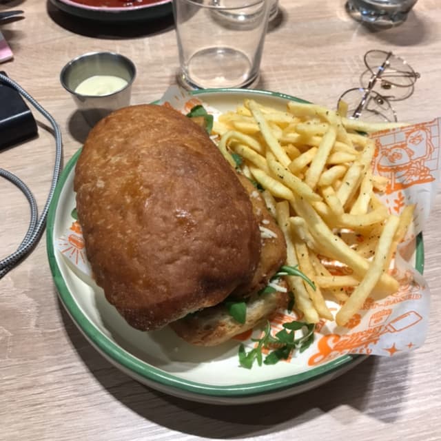 Per chi rimpiange la “zozzosità” dei classici panini del fast food, questo panino aiuterà a placare tutte le vostre voglie! Un doppio smashed patty, con cheddar veg colante, lattuga, cipolle e stack sauce, il tutto racchiuso in un soffice bun di patate. Molto gustoso e molto soddisfacente. I due patty di carne sembrano i classici. Viene di solito accompagnato con patatine fritte con origano, davvero ottime (anche se l’ultima volta erano fredde). Questo resta sicuramente uno dei miei preferiti. #fastfood #smashedburger #fastfoodvegan #govegan #milano #neatburger