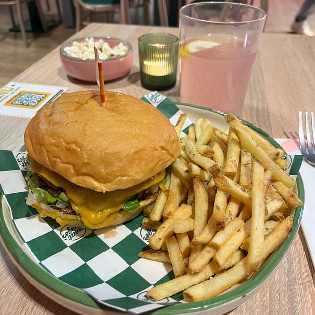 Spettacolare panino morbidissimo con burger delizioso e saporito, dalla consistenza perfetta, con doppio cheddar (il migliore che ho assaggiato), lattuga e cipolle, con la loro salsa segreta buonissima. Sto riempiendo di superlativi ma mi mancano le parole per descriverlo bene. Io ho aggiunto per 1€ bacon (ottimo) e sulle patatine incluse ho optato per l’opzione loaded (mayo, cheddar, cipolla e peperoncini piccanti) per 2,5€. Senza aggiunta di optional il prezzo é 13,5€, che trovo assolutamente congruo, senza contare che per una gioia così grande e veg pagherei anche il doppio.