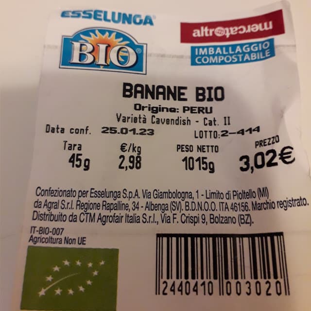 Banane Bio acquistate presso 'Esselunga'. Prodotto di buona qualità ad un prezzo vantaggioso