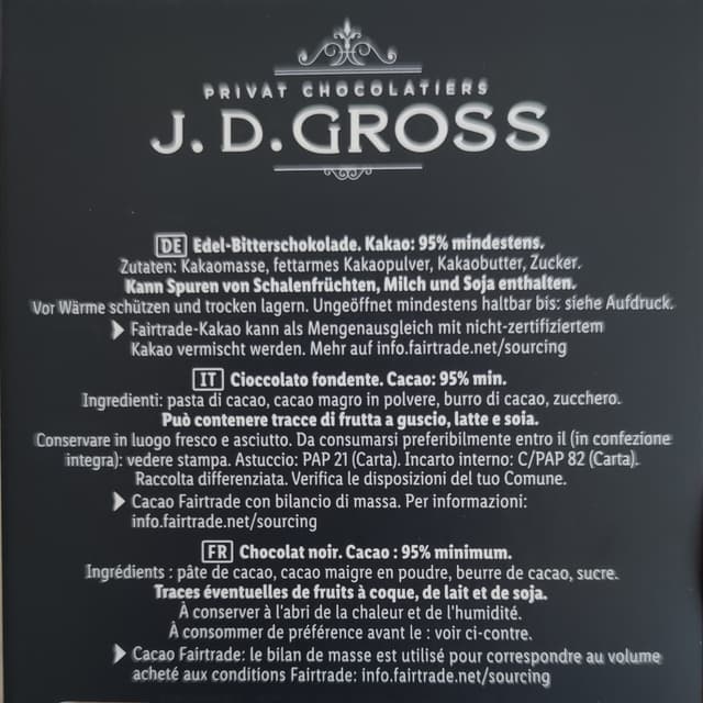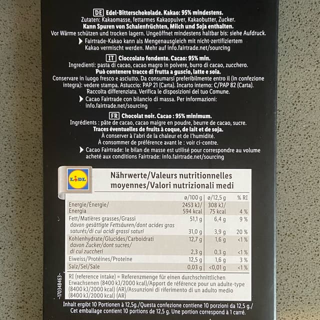 Questa marca di Lidl produce veramente del buon cioccolato con un ottimo rapporto qualità-prezzo . I fondenti sono tutti buonissimi , questo forse un po’ troppo fondente per me ma buono lo stesso .