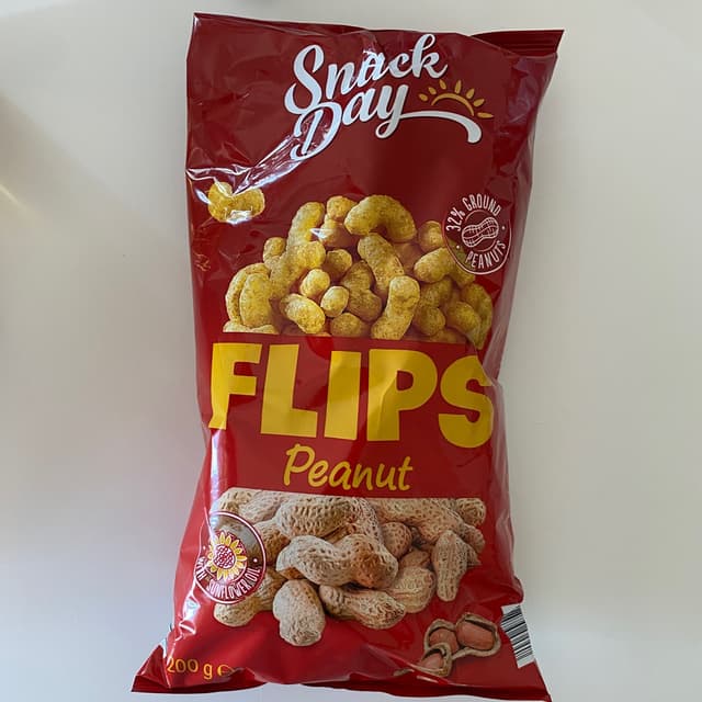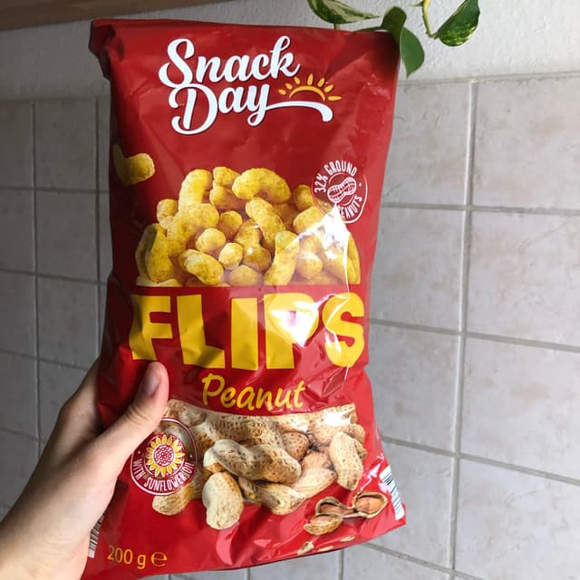 Flips Peanut is a crunchy, savory snack made with roasted peanuts and corn, seasoned with a blend of spices. It is a protein-rich snack that is convenient for on-the-go consumption due to its portable packaging. Some customers have reported enjoying its flavor and satisfying their cravings with it.