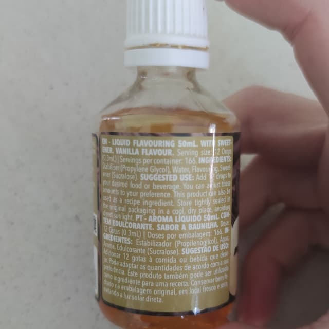 Dolcificante liquido al sapore di vaniglia. La boccetta è da 50ml e costa 5€. Ne bastano davvero pochissime gocce quindi dura una vita. Io lo uso per addolcire un po' il porridge e coprire il sapore di legumi delle proteine; utilizzo 2 - max 3 gocce.