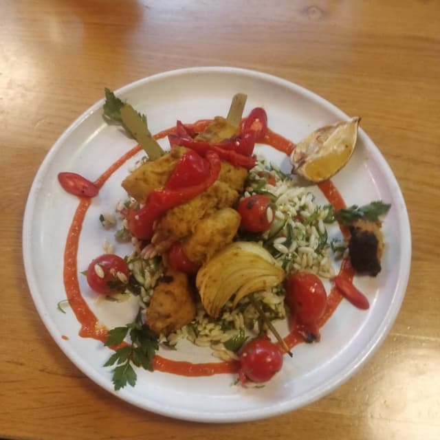 As delicious as it looks! 😊 I'd get it again, the plant chick'n is marinated in mango, and it's beautifully presented! 🌱