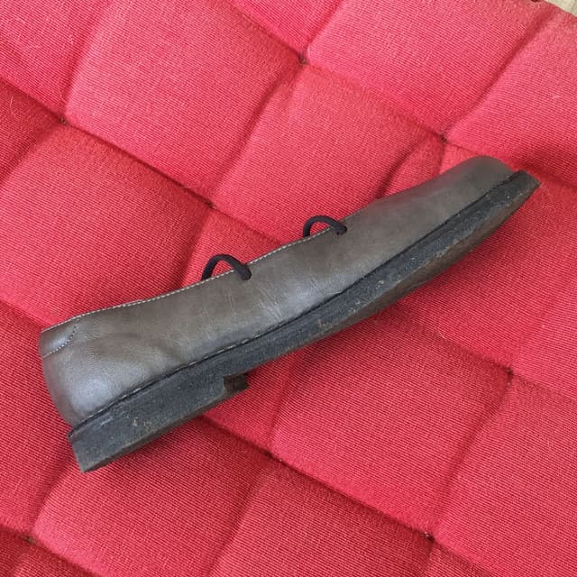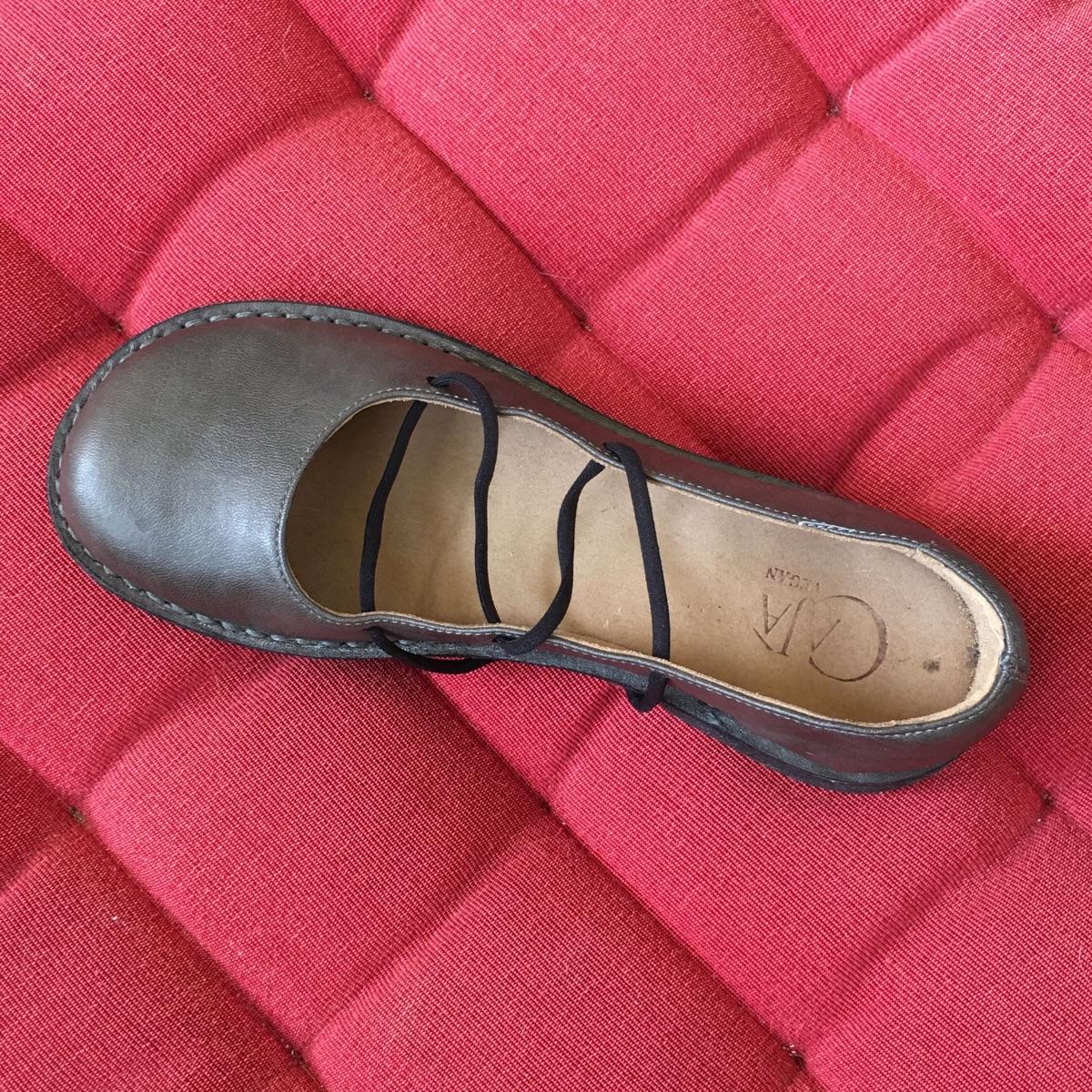 Queste ballerine hanno un’ottima consistenza e hanno i lacci piuttosto originali. La suola è antiscivolo. Sono un po’ rigide e purtroppo feriscono il tallone perché la cucitura posteriore non è perfettamente appiattita nonostante l’ottima idea dell’inserimento in quel punto di una sorta di cuscinetto. Nulla che non si possa sistemare con qualche martellatina ben assestata da parte di un calzolaio.