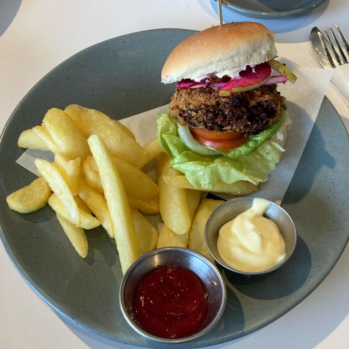 Really great to have a new vegan option on the menu. The cauli patty was good although a bit too oily for my taste. Topped with an apple, beetroot and coriander slaw which was a tasty addition. Sides of potatoe chips and vegan Mayo.