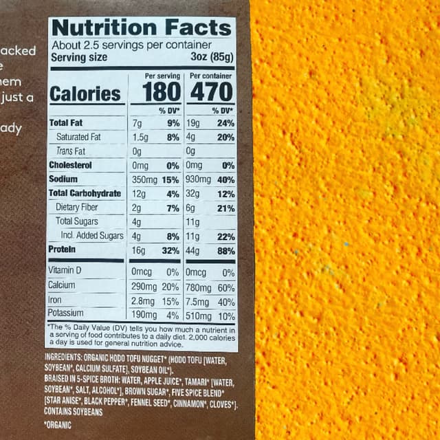 Nutritionally, there are 2.5 servings in a packet, and each 3-ounce (85g) serving will give you 180 calories from 7g of fat, 12g of carbs and a whopping 16g of protein. It is also a good source of calcium and iron.