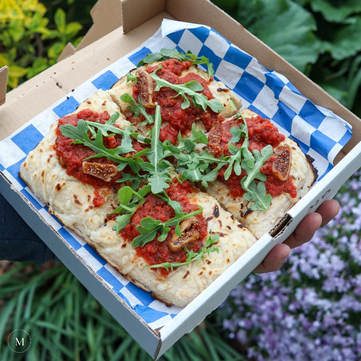 I love the "Rock City Pan" crust. It's so soft and fluffy with added sesame seeds on the bottom. It kind of reminds me of an everything bagel. We ordered the #dairyfree vegan cheese, so we had to pay an upcharge on that. It also had fresh figs, arugula, and a very sweet marinara sauce. It had a lot of flavor and I really enjoyed it. I would definitely recommend trying this. The price is a bit steep, but if you stick to veggies and no vegan meats, it's not that bad. I don't really like meats on pizza anyway that's totally a Greg thing and something I've adapted to.😅
