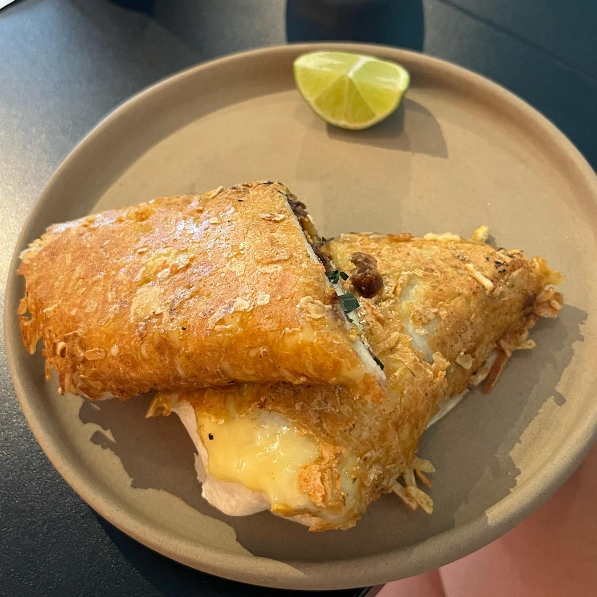 Súper rico, con lo crujiente de la costra de queso, muy equilibrado en sabores y la porción muy bien servida.