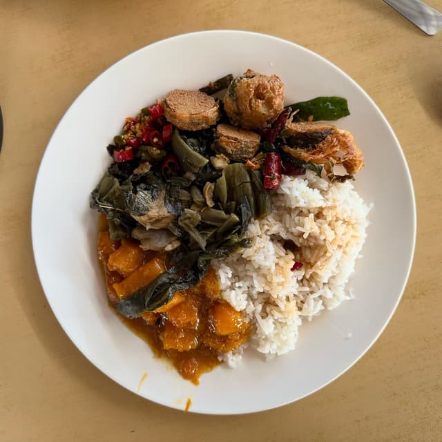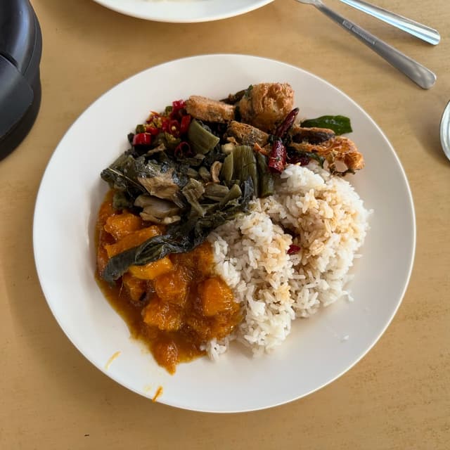 The price point is about what you’d expect for #mixedrice — anything from RM4-8 based on what you get. If they have fried #veganfish with #curry leaves I highly recommend getting it 🐟