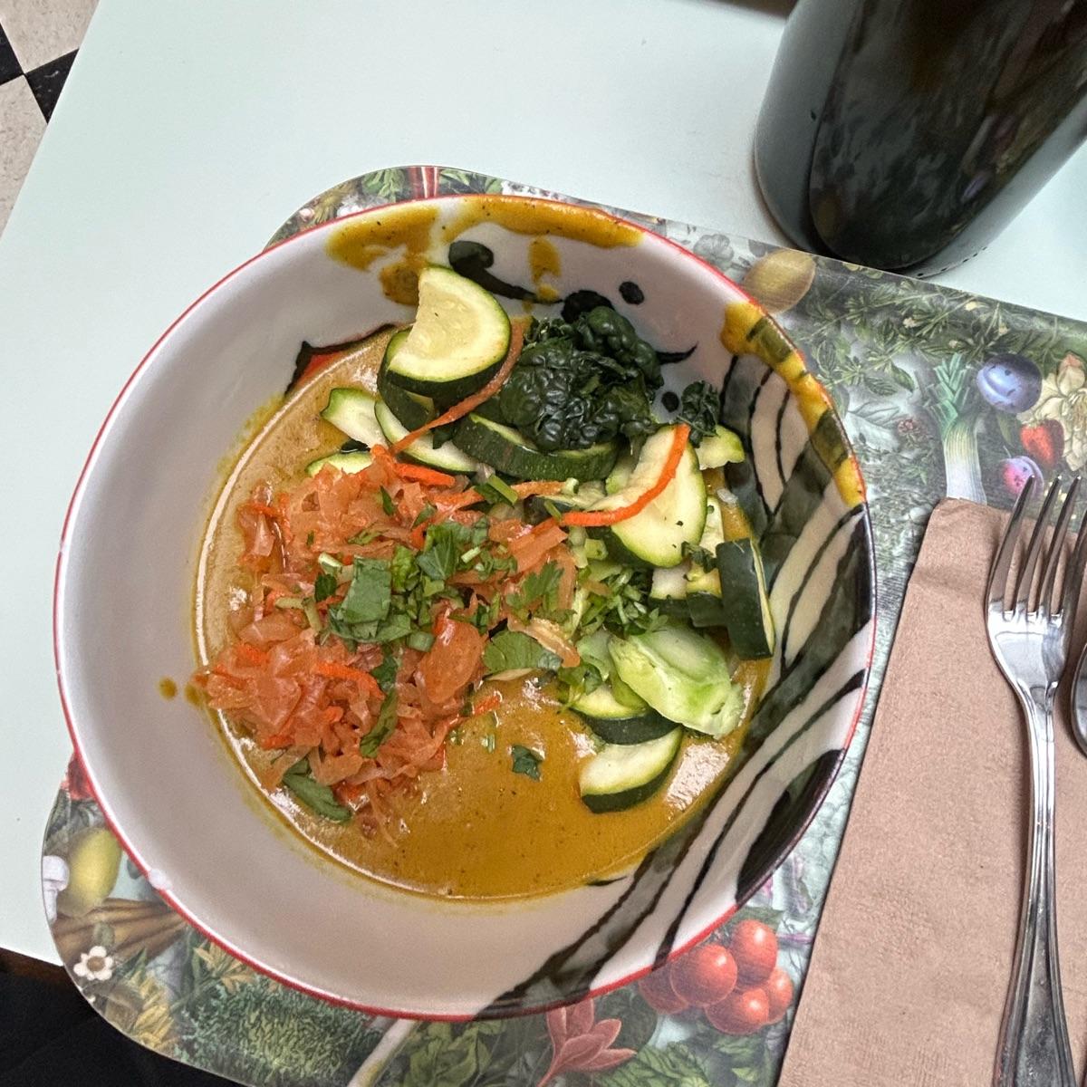 This was so hearty and satisfying!! It consists of coconut brown rice, curry, some kimchi, and zucchini! The coconut flavor came through in a way that wasn’t overpowering the dish, but just right. I wished the curry had a bit more ingredients, but it was so creamy, and complemented the rice so well!