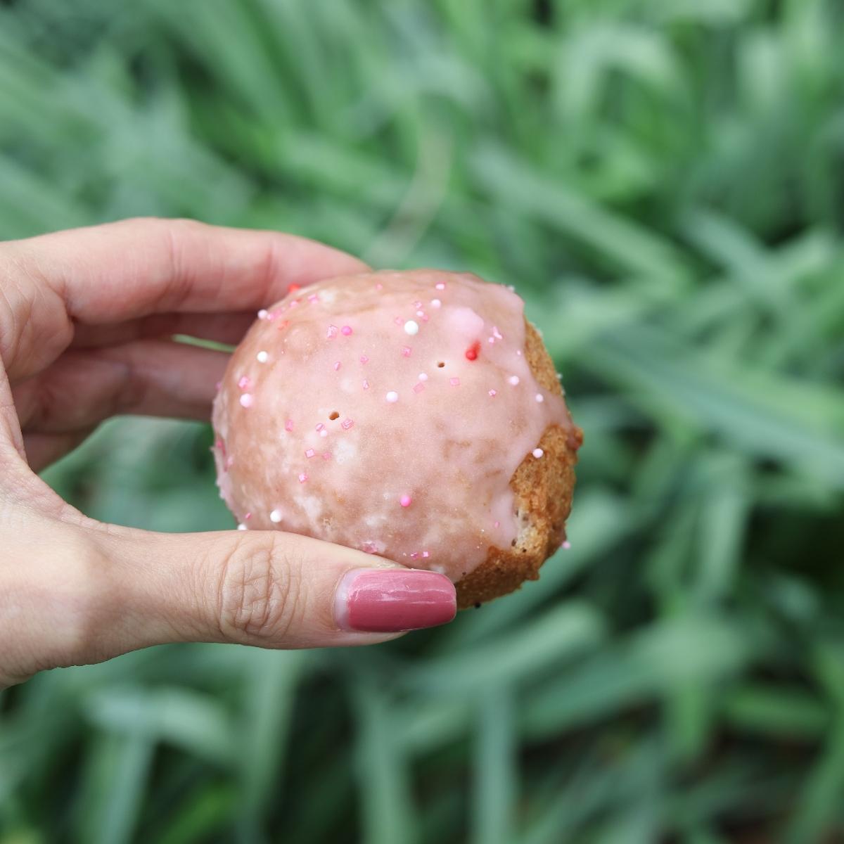 These donut nibblers are fun! They're a bit larger than a typical #donut hole, and they're $3, so a decent #value. These are also a bit bready and dense, but they have great flavor. This beautiful pink donut had a really nice #lemon flavor and almost a hint of berry as well. This would be a fun treat for kids, or if you don't want a whole donut. On this day, Destination was 100% #vegan which is so great! They have and continue to make great strides!