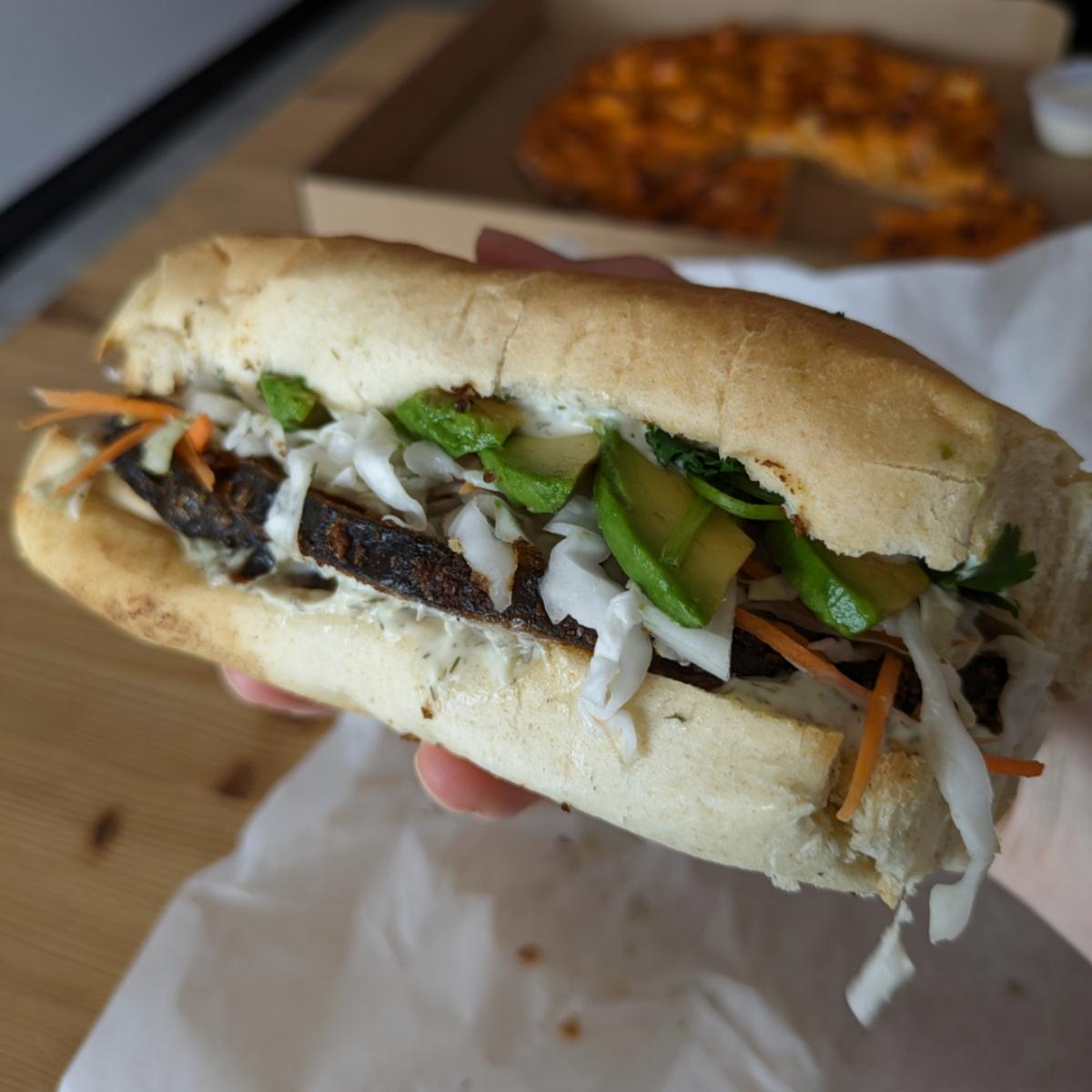 the Fysh Banh Mi is AMAZING!!! the "fish" is thick and crispy and has an awesome flavor plus the veggies here are always fresh and perfect. Half Peach is always 10/10