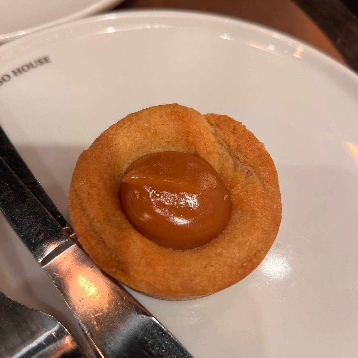 🇬🇧 Tea biscuit filled with caramel type mou: very good caramel, sweet without filling, delicious.