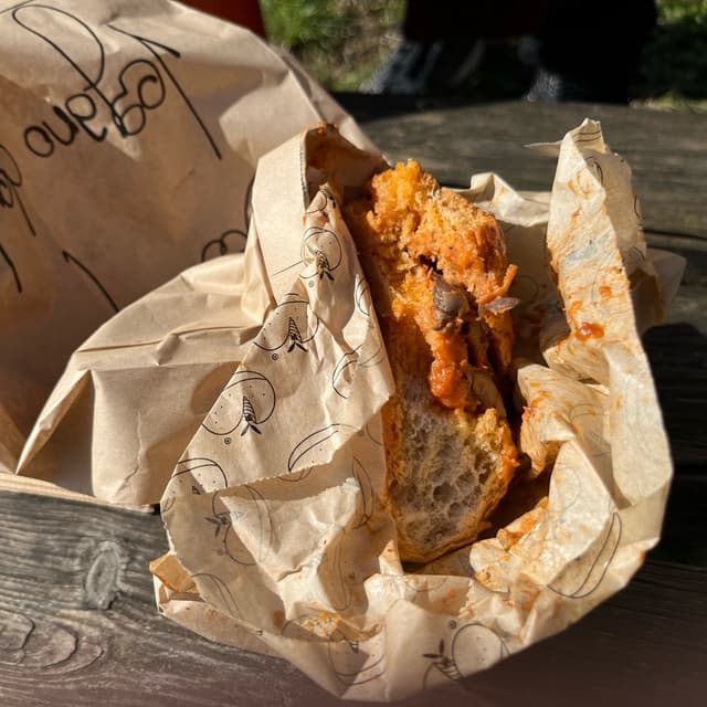Questa volta ho provato il panino alla vegantrippa (seconda foto): anche in questo caso un tripudio di sapori buonissimi e una consistenza simile all’originale con il grandissimo pregio di non aver fatto del male a nessun essere vivente!