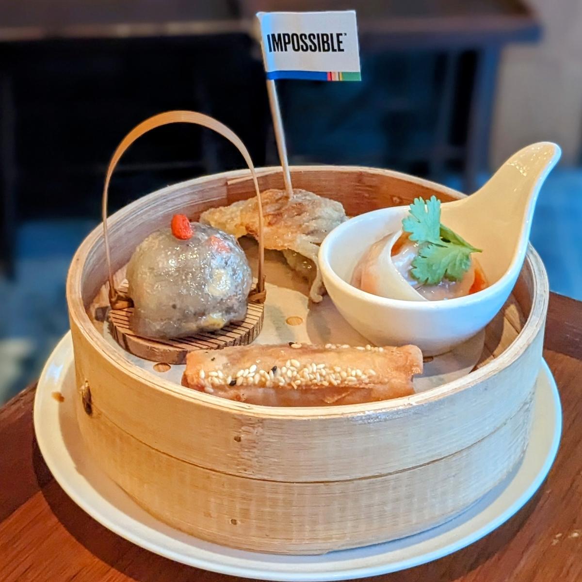 Good way to try an assortment of their vegan dim sum! 🥟🍢 It was actually kinda hilarious because my partner proclaimed the first item he tried "the MVP", then tried the next item and excitedly declared that was "the true MMVP", and so it went on for all 4 items. 😂 Featuring crunchy Deep-Fried Vegetable Spring Roll stuffed with sweet jicama and cabbage, Sichuan Steamed Plant-Based Meat Dumpling with red chilli oil and aged black vinegar, Steamed Mushroom and Corn Dumpling in an adorable little basket, as well as their bestselling Pan-Fried #Impossible Gyoza. 🍄🟫🌽 ($9.80 for 4 pieces) #sgvegan #veganoptions #chinesefood #dimsum