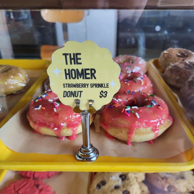 The Homer is an excellent strawberry glazed donut with sprinkles. Looks just like the one featured in The Simpsons.