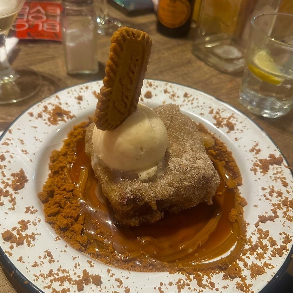 I love an outrageously decadent dessert! A deep fried piece of sticky toffee pudding with ice cream and biscoff sauce . Loved that it was warm and gooey, perfect with the ice cream. Generally I’d been feeling a bit sick of biscoff but this was soooo yummy. Very rich so perfect for sharing #dessert #vegandessert #biscoff #icecream #stickytoffeepudding #stickytoffee #glasgow #scotland
