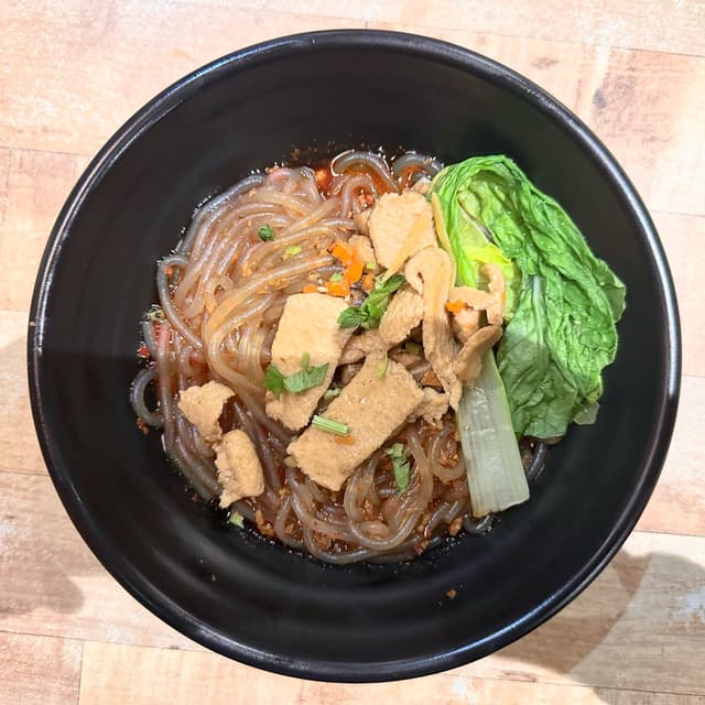 Though it’s not advertised properly, all the #vegetarian food here is actually #vegan 😆 Many thanks again to my friend who used to be the operations manager for their ingredients 🙏 The omnivore version of this is their absolute signature. It’s all about the #spice with the #noodles here 😉 It’s a bit of a bummer that the only #veganfriendly #noodle option is this #vermicelli BUT it’s really well done 😛 I do love slurpin’ on this gentle but thick sauce soaker 😝 From the S to XXL spice level offered, I always get the standard M 😌 It’s a good level for struggling spice lovers like myself 🙃 It hits my savoury notes to great satisfactions! I feel as though I recognise the #mockmeat which is a brand I can’t recall but it’s good!! It still has that slightly fibrous plant feel 😗 RM13.90 ‘cause times are tough so I can’t complain really… 😶 I do recommend as they’re a franchise that remains open later than the handful of vegetarian restaurants in Kuching 😅