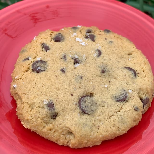 Big ol’ choco chip cookie. Lots of chips studded throughout a flavorful dough with just a touch of salt.