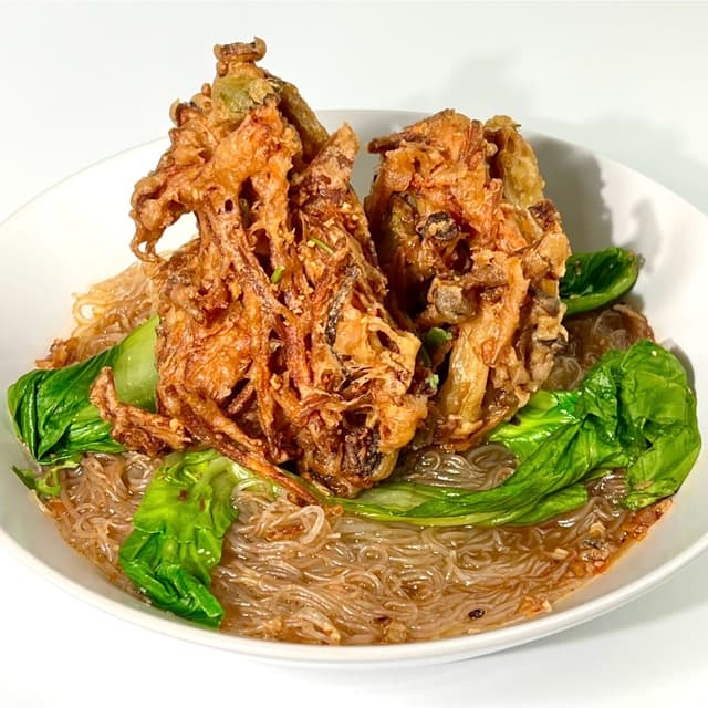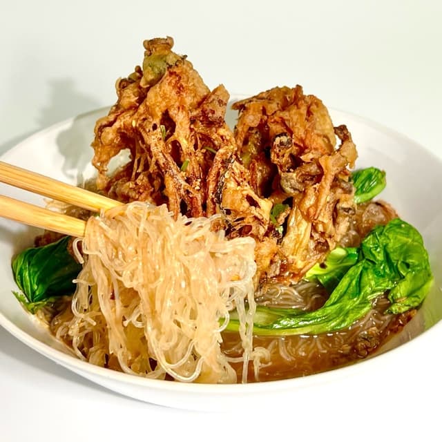 This consisted of crunchy savory veggie tempura, smooth, soft, and chewy steamed glass noodles, bok choy, and cilantro in an aromatic house spicy, bold, intensely flavorful ma la broth. Wow! (hot) 🌶🌶🌶🌋🌋🌋 #tempuraveggies #noodlesoup #asiannoodles #vegannoodles #panasiancuisine #veganpanasian #bipocwomanowned #supportasianbusinesses #asianowned #pdxvegan