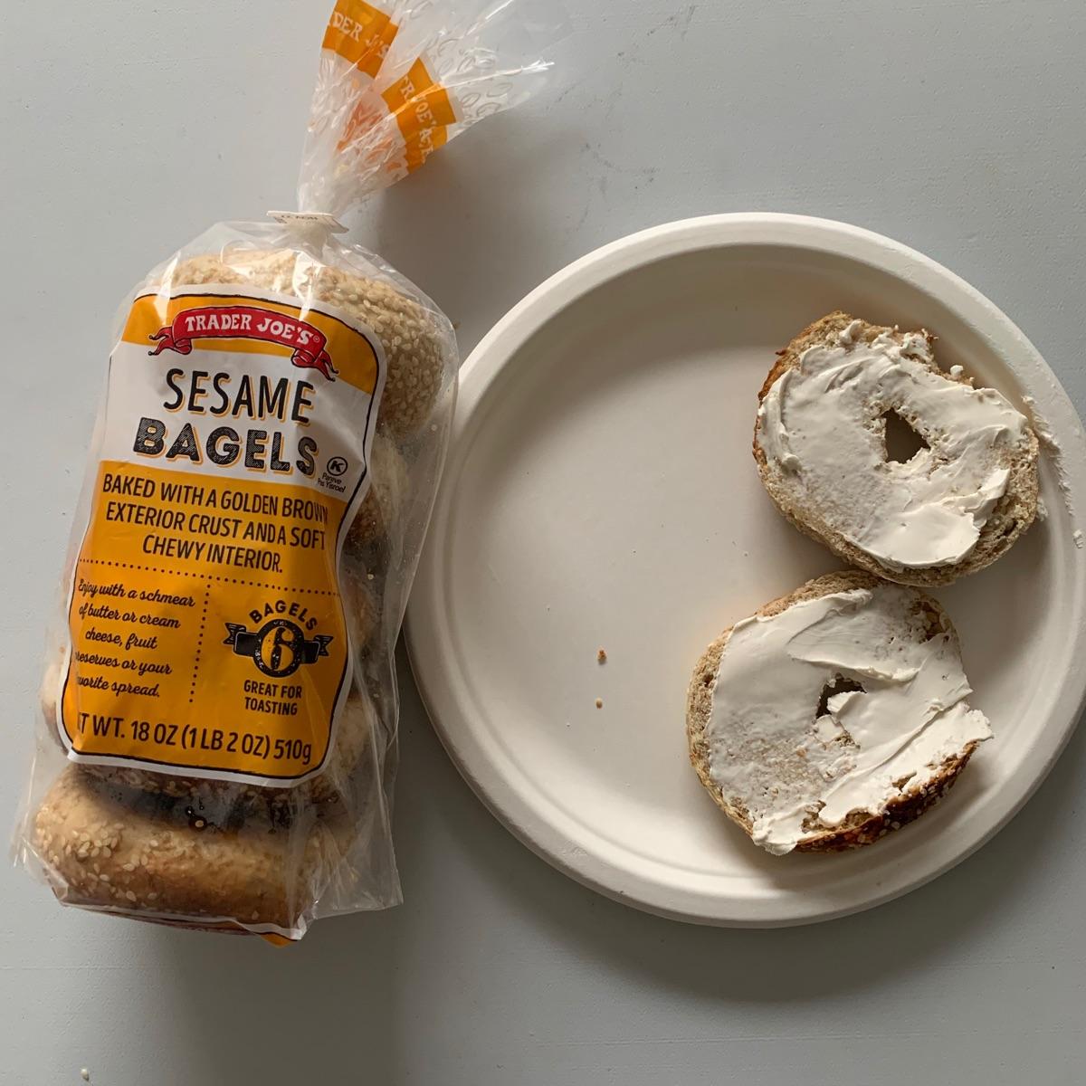 This plate looks so bare, and probably unnecessary with how quickly I ate the bagel anyway. It was good for catching crumbs, though! I like sesame bagels as a step-up above plain but still versatile for both sweet and savory toppings. Trader Joe’s bagels are pretty dry to me, but mediocre bagels are better than none.