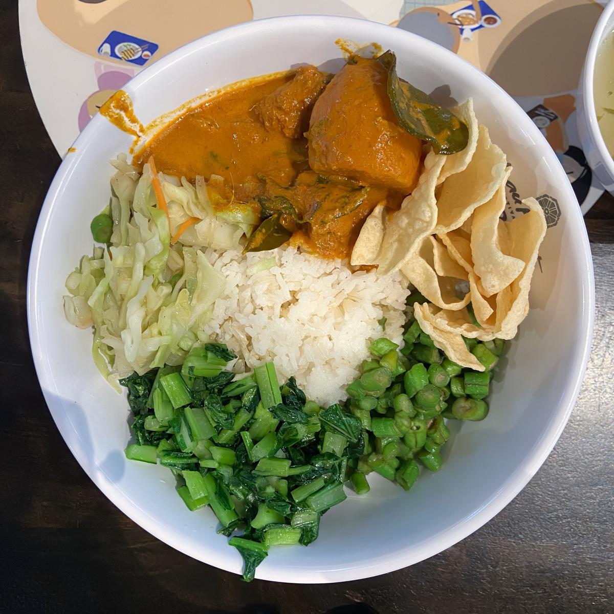 I stand corrected! 🤩 The first dish I had here was actually this #nonya chicken #curry 🐣 Not the #briyani! https://app.abillion.com/reviews/639078ce3fbfb4508c036b11 This was not #spicy but if the #biryani was an indication of anything this might’ve changed since! The sides are the same as always but the curry 🍛 a nice luscious aroma and not too thin 😋 The inclusion of a potato made this stellar for me cause who doesn’t love a #carbilicious curry? 🤭 Like many things here, this cost me S$6.90 for quite a large portion!