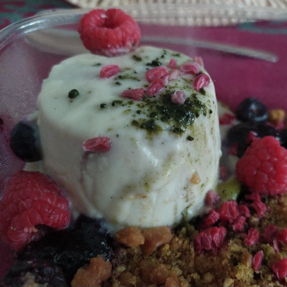 Está ambrosía de chocolate blanco con frutas del bosque está espectacular. Muy original y cremosa, aunque bastante cara.
