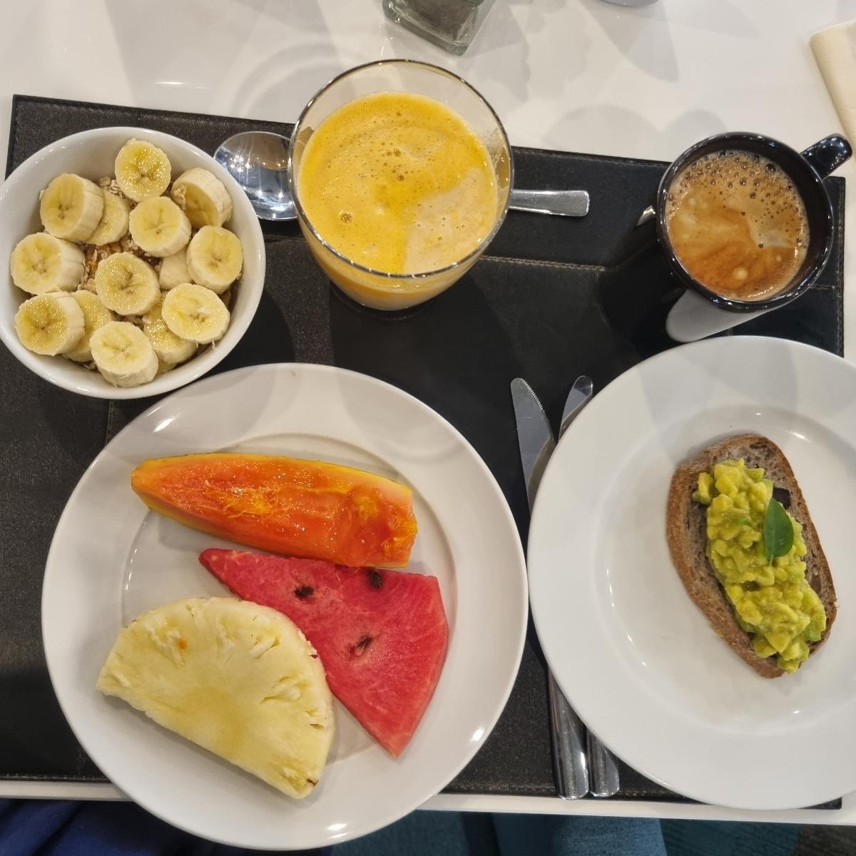 Good hotel, I recommend it. Pretty good breakfast. I had to ask for the almond milk of course, and it ran out on the 3rd day, but then I got soya milk instead. For milk-free bread, they pointed me towards the gluten free as usual 🤦🏼♀️ They made me a smoothie with almond milk that I used as yoghurt with the müsli. There was a juice machine where you could make your own juice, which I enjoyed. On the a la carte breakfast menu nothing was marked vegan, but they had things like avocado toast and tapioca and something more I've forgotten that would be vegan as long as you ask for the right toppings.