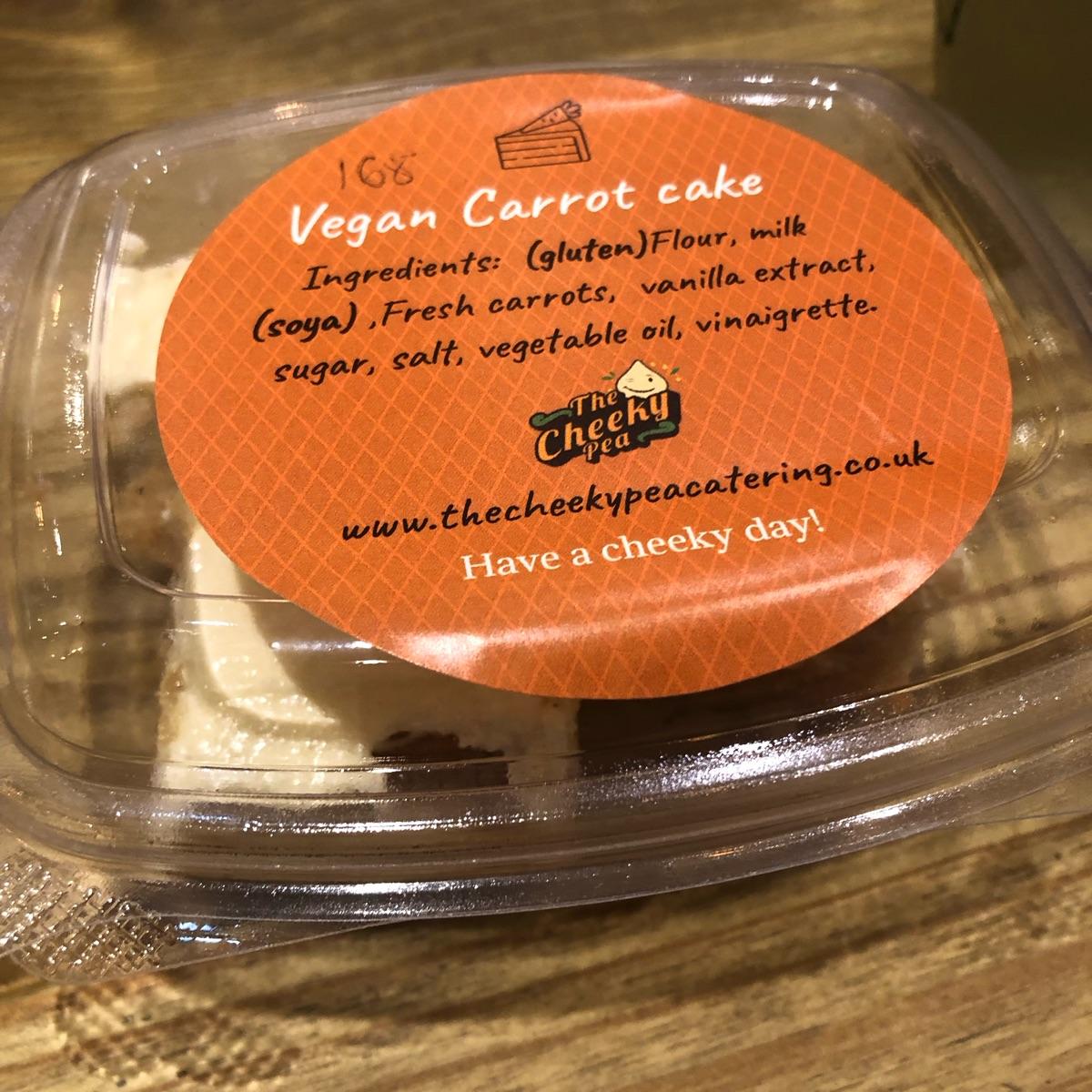 Really nice carrot cake, lovely and fluffy with a tasty icing. It is a bit delicate to pick up with fingers though. Marked vegan.