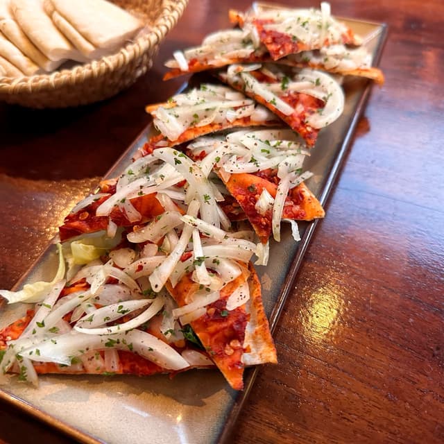 This was a little dry 🐪 ..but amazing nonetheless! Just a basic spread of #harissa over #pita with some slices onions but it works so well 😋 I’d recommend having it along some dips from their cold #mezze platter for a perfect combo 👌