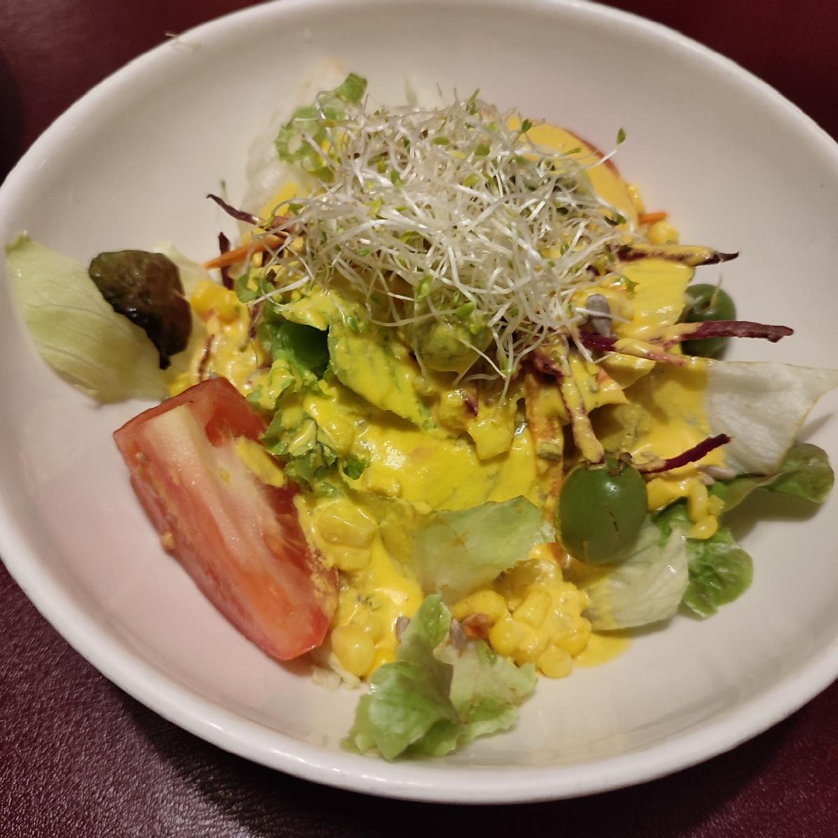 Una ensalada, sin más. La salsa de zanahoria le da el toque pero era un pelín amarga.