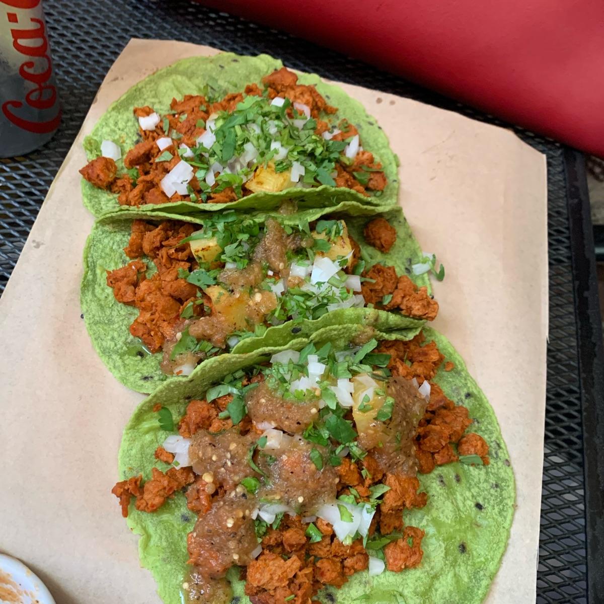 Está rico la manera en la que condimentan la soya, está bien lograda la combinación de sabores, son buenos, los recomiendo, pero considero que hay platillos mejores que estos tacos, siento que les falta algo para que den el gatazo.