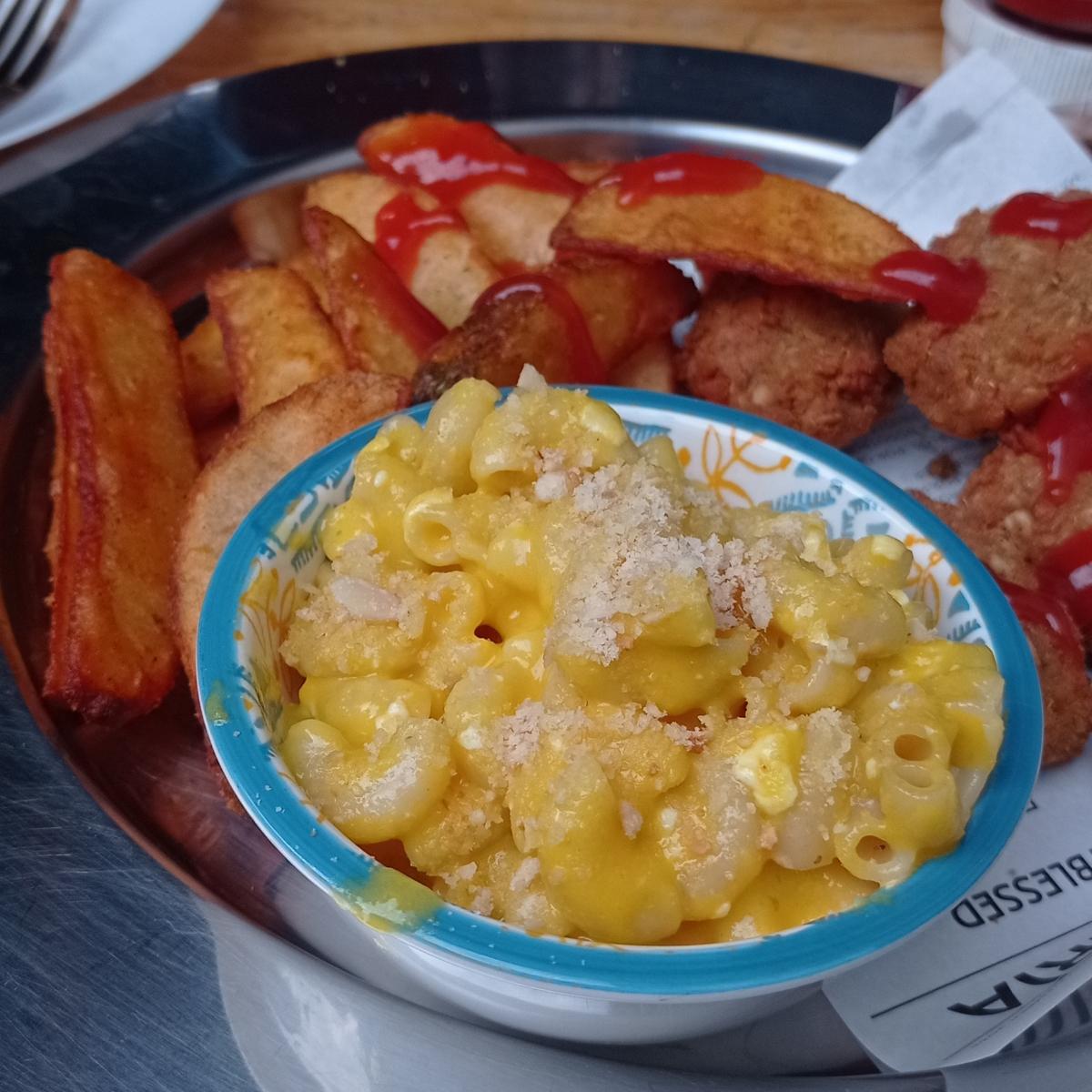 ¡Me gusta mucho! Los macarrones con queso estaban deliciosos. Lo único que mejoraría es la textura de los nuggets y tal vez un poco el sabor, pero me los comí con gusto también.