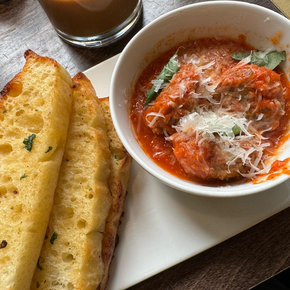 My partner had a light meal with his daughter here recently and this is what he ordered. He said the meat balls were delicious and he loved the #tomato sauce and #garlicbread on the side. Cute presentation as well.