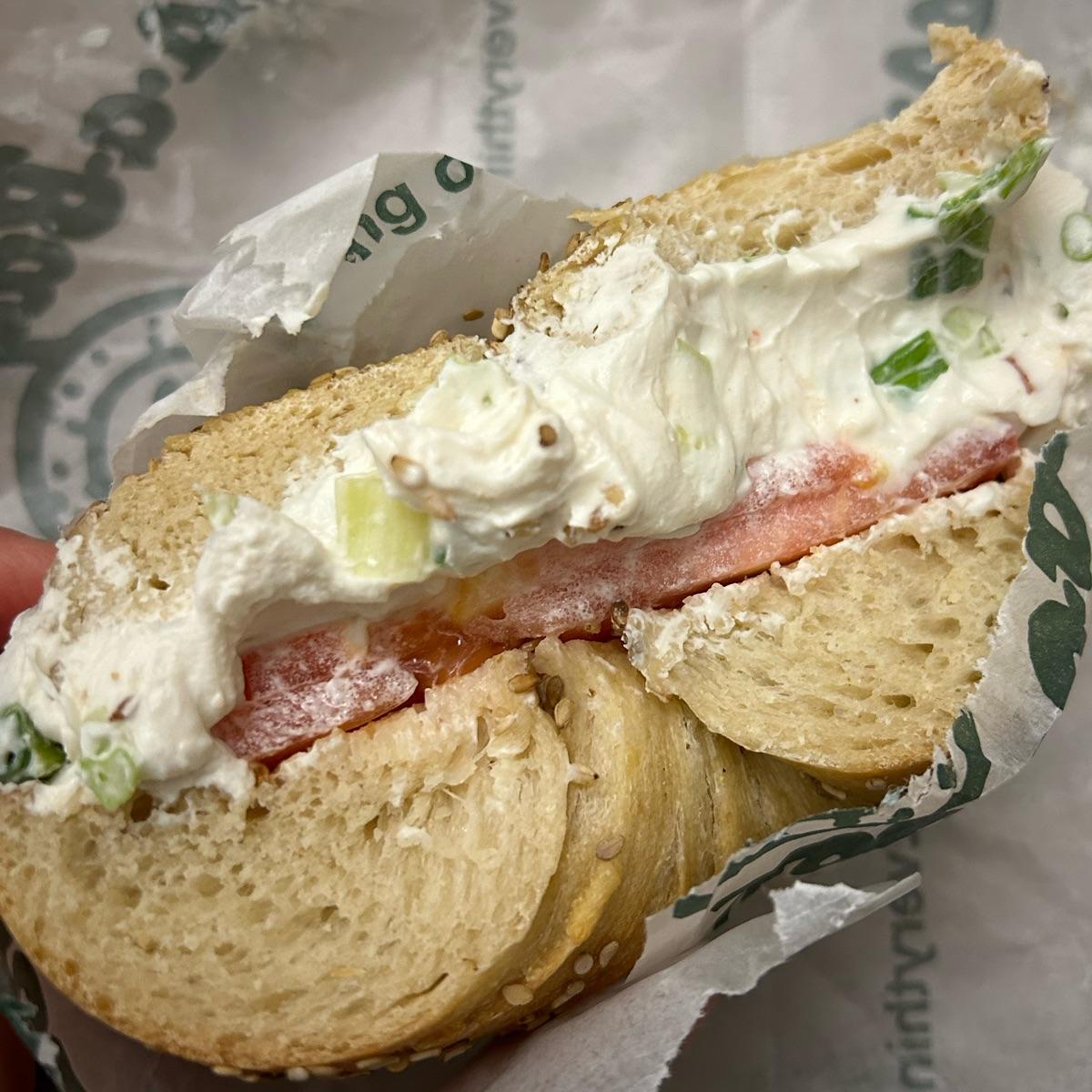 The texture of the cream cheese blew me away! I think it’s better than regular cream cheese. It was so creamy and the scallions were so fresh, and along with the tomatoes I added and crunchy sesame, it was perfect. The bagel, of course, was amazing too!