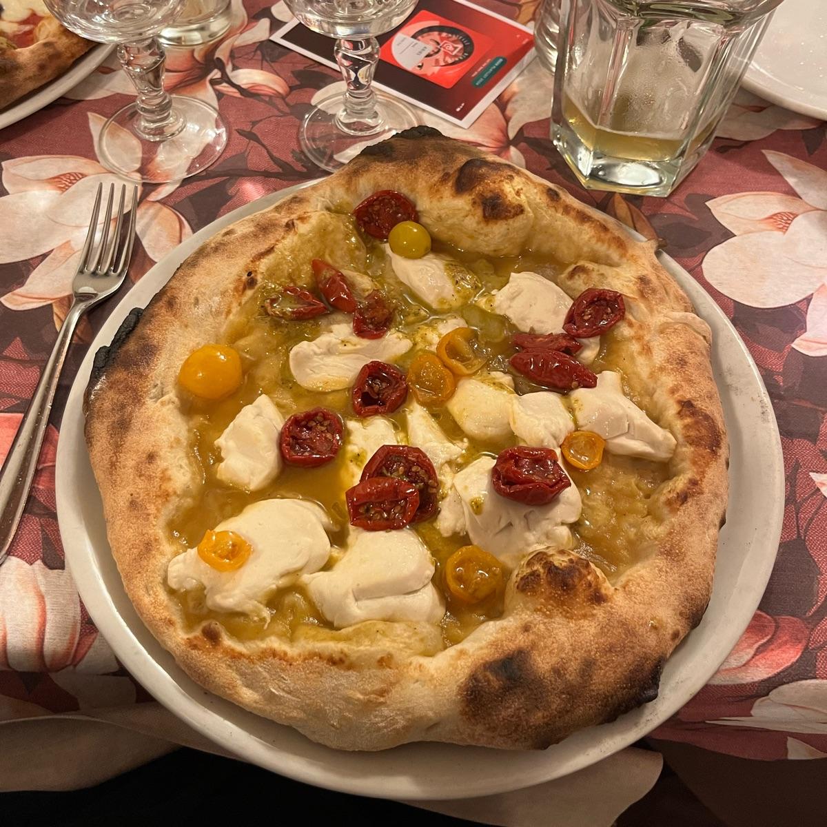 Pizzeria vegan-friendly con un’ampia scelta di pizze vegane e sezione dedicata nel menu. Il locale è molto semplice e il servizio informale. I prezzi delle pizze vegane vanno da 10€ a 14€, io ho provato questa Pomo-veg che costava 13€. Gli ingredienti erano mozzarella vegetale Dream Farm, salsa di pomodoro lungo giallo, pomodori semisecchi rossi e gialli, pesto. La mozzarella vegetale aveva un sapore molto delicato, quasi sciapo, ma la consistenza era ottima, morbida come una mozzarella fresca. Gli ingredienti stavano bene insieme e l’impasto in stile napoletano era molto buono. In complesso buona ma niente di straordinario. Sarei curiosa di tornare e provare altre pizze più creative. #pizza #veganpizza #veganmozzarella #dreamfarm #pizzeria #brescia