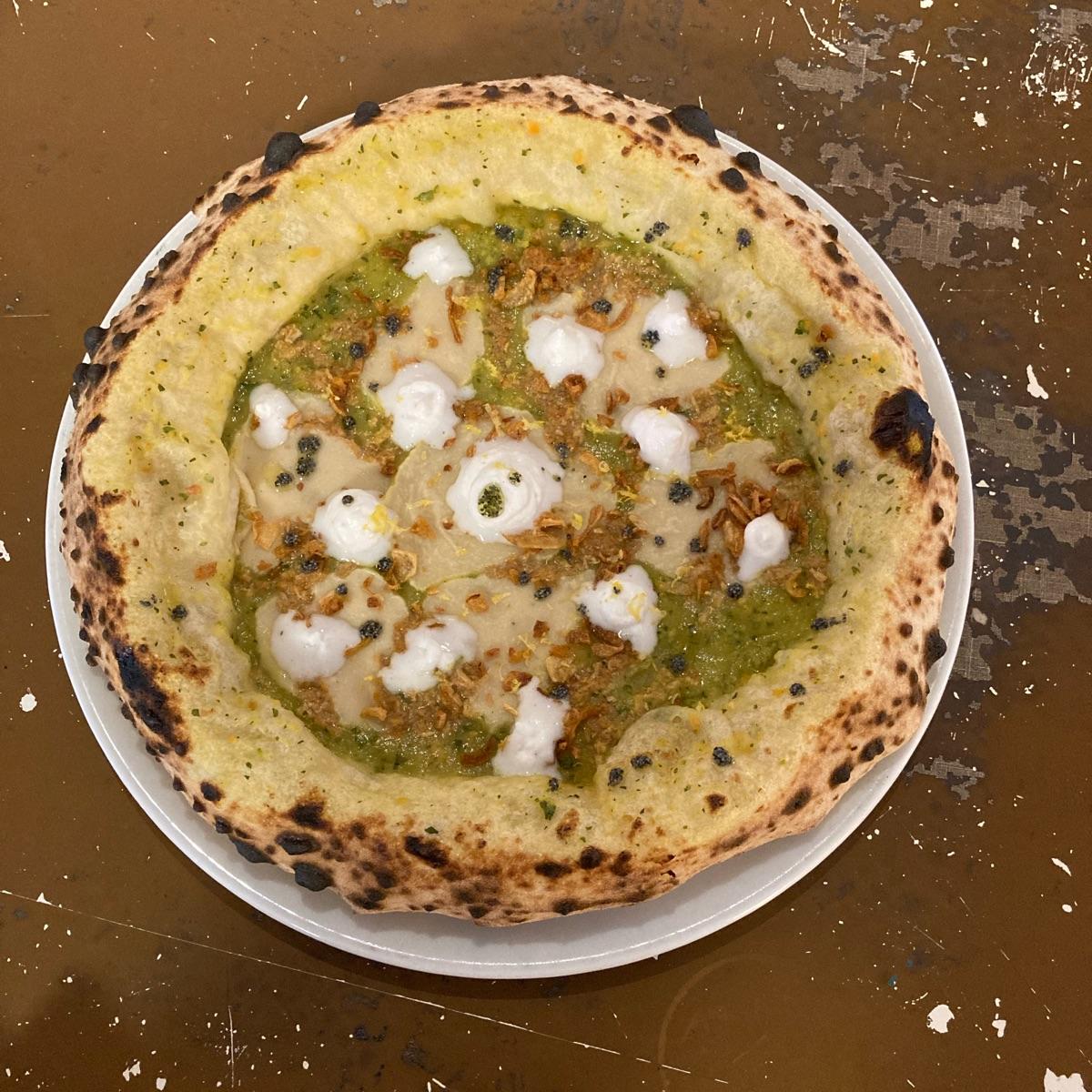 #courgettes cream, homemade cashew #mozzarella , #vegantuna , roasted onions, fresh lemon cest, #ricotta#ricotta, #poppyseed infused extra virgin olive oil and lots of vegan love 😋❤️