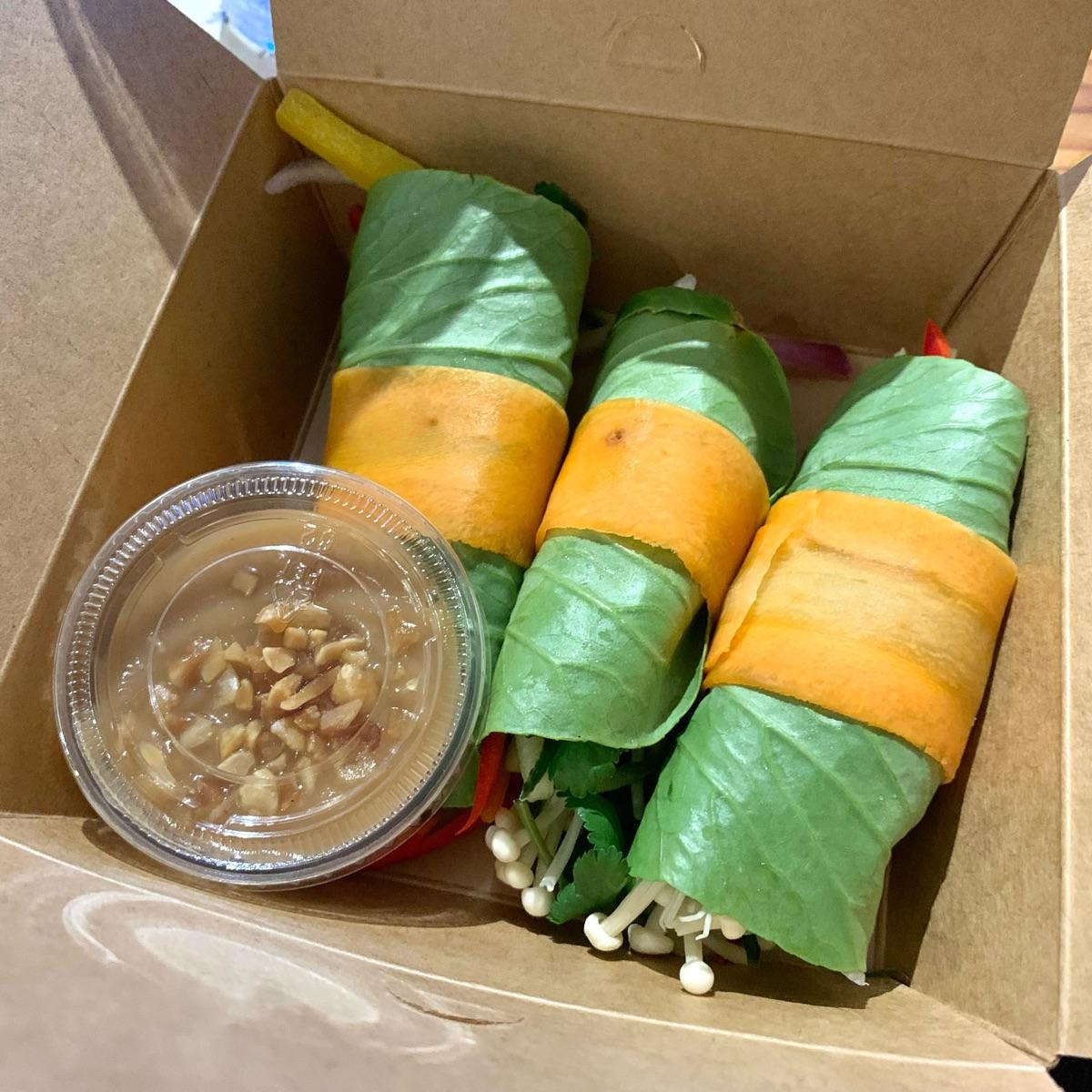 I love these! I get them every time when we order from #pho because they’re healthy but are also surprisingly filling! They are literally just pepper, chilli, enoki mushrooms and cucumber wrapped salad leaves and carrot, and you can choose from a few dipping sauce options (I get sweet peanut sauce). I’ve made them from scratch too - a great snack or light lunch choice.