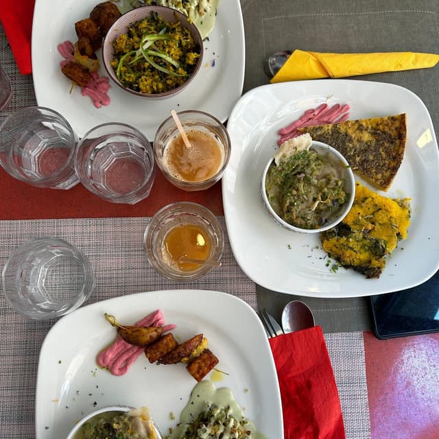 Propongono un piatto unico composto da 3 voci: cereali, proteine, e contorno. Io ho scelto cous cous con verdure , spiedini di tempeh con maionese veg, broccoletti con salsa tahina. Tutto buonissimo, saporito ma leggero allo stesso tempo. Ottima esperienza. Prezzo onestissimo