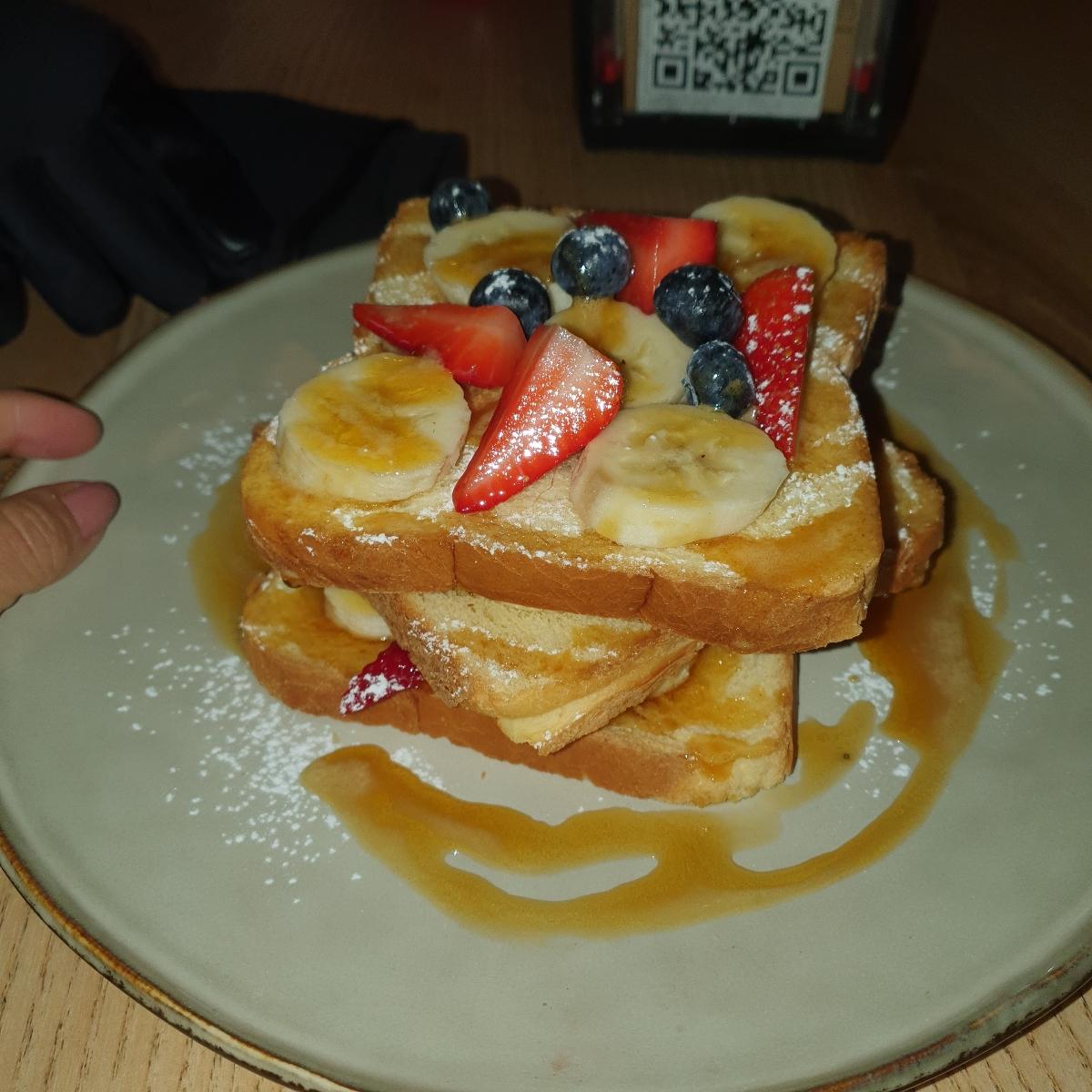 9€ molto ben spesi per un triplo french toast cpn frutti di bosco, banana, sciroppo d'acero!