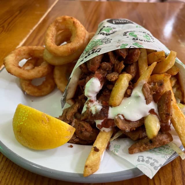 🧅 Yummmm. I love how they have started serving their food on real plates rather than in disposable paper/containers. That will save lots of waste. I also love how they serve their onion rings with a lemon 🍋wedge to lift the flavors. These are £4.50, crunchy and homemade. We just die over the award 🏆winning kebabs🥙 at this chain. If you haven’t tried them they are a must if you are visiting Brighton, Manchester, Camden, or Shoreditch. Just delish! They took down the menu on the wall like a takeaway and now have a fancy menu on card on the tables, oo la la! #saveveganrestaurants #veganrestaurant #allveganrestaurant #onionrings #veganlondon #londoneats