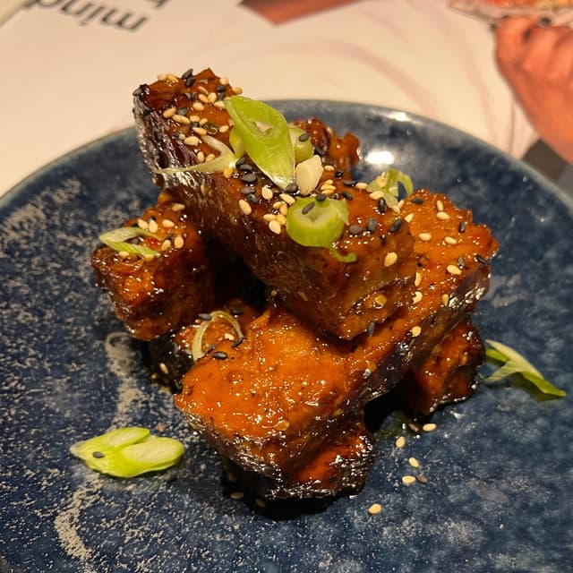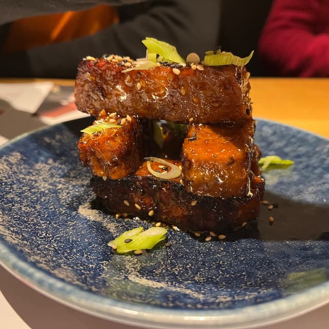 The 🇫🇷 guests were also keen to try these which is no surprise. Again I don’t think I’ve reviewed them before which is ridiculous. These sticky #veganribs are divine and not to be missed. They are a great consistency and made from #mushroom and #soya protein. Then there is a sweet and #spicy sticky sauce with a sesame and spring onion garnish. YUM. They are quite filling. They used to make a ramen bowl with these my partner loved and was really awesome. He’s livid they cut that from the menu, such a shame. Wagamama bring that back please! #fakemeat #veganmeat #veganlondon #londoneats