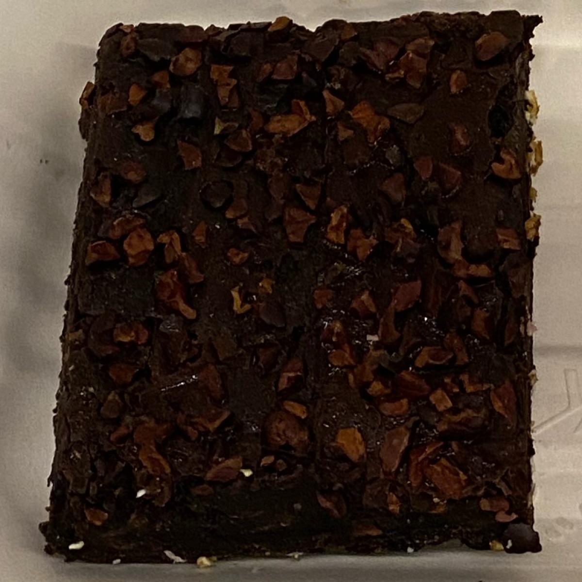 A chocolate brownie containing chocolate chips topped with cacao nibs. Not too sweet, tasty enough but found the texture a bit stodgy. I think it’s made by cravings bakery.