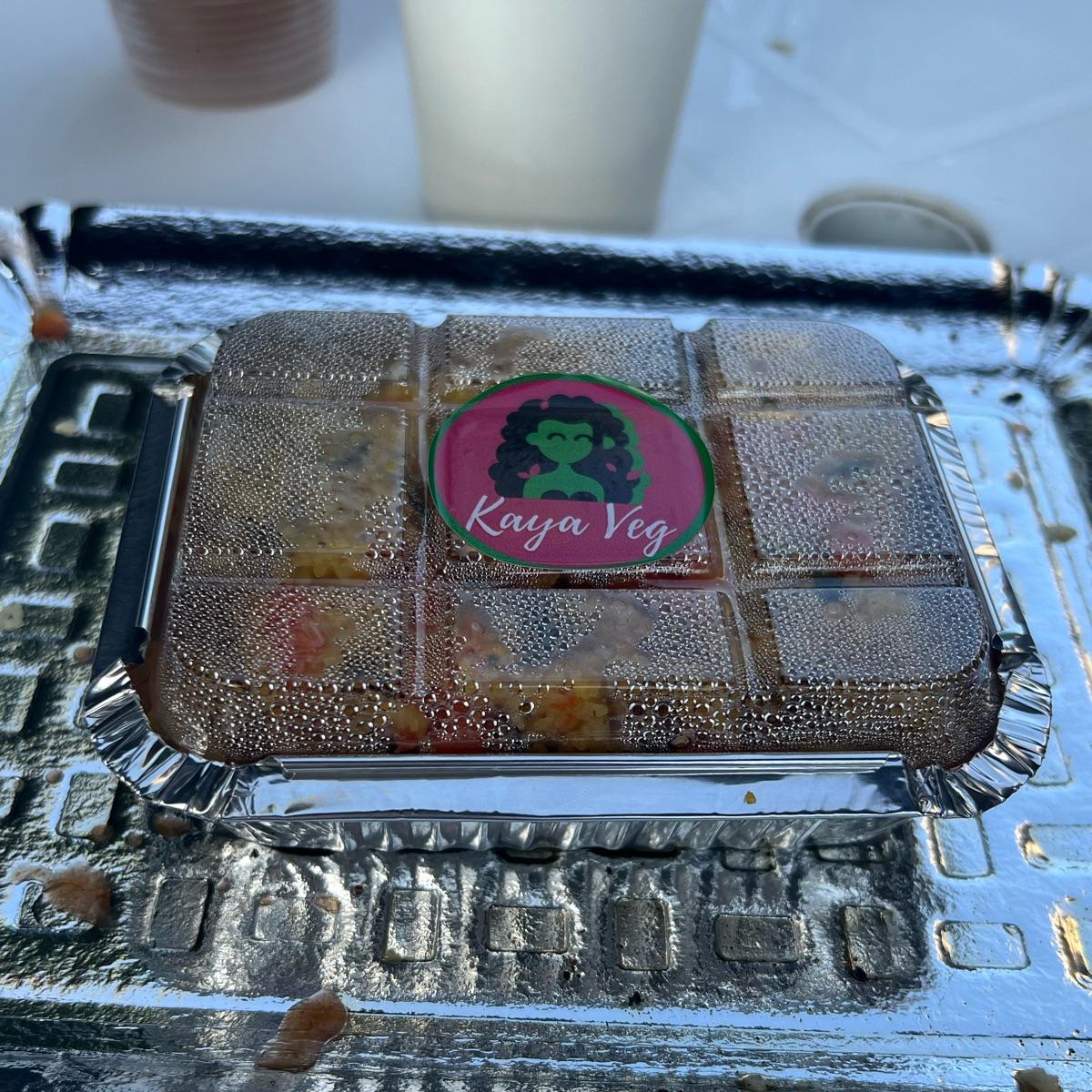 As comidas desse restaurante são super acessíveis e saborosas. Esse é um cuscuz com carne vegetal, bem temperadinho.