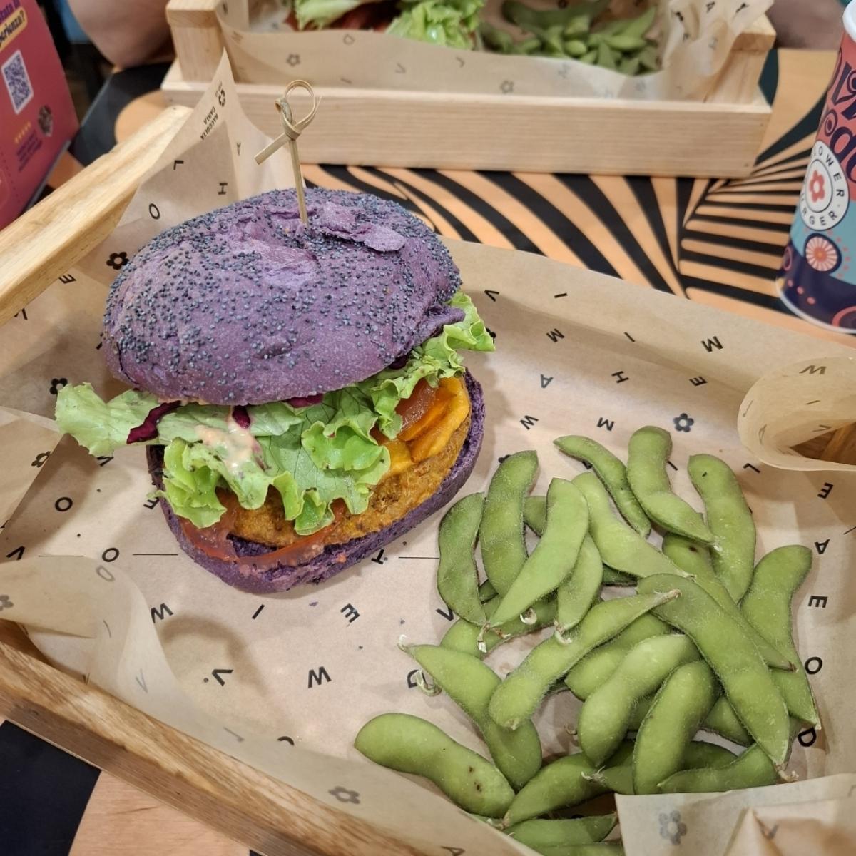 “Un fiore in bocca può servire sai, più allegro tutto sembra” cantavano Battisti e Mogol. Ed è proprio questa la mission di Flower Burger, la prima veganburgheria nata nel 2015 nel cuore di Milano, in continua espansione sia in Italia che all’estero. Il fiore come espressione di positività, gioia e amore. Un legame con la natura che si declina nelle tonalità dell’arcobaleno con una proposta culinaria 100% vegan: burger la cui caratteristica fondamentale è il colore. Si passa dal pane giallo fatto con la curcuma, al viola grazie alla carota nera fino all’amatissimo rosa, ottenuto grazie all’estratto di ciliegia. Il team di Flower Burger è sempre alla ricerca di nuove colorazioni naturali e di nuovi ingredienti per stupire e colpire i nostri clienti. Jungle Burger, Flower Burger e Cherry Bomb sono solo alcune delle proposte offerte accompagnate da patate profumate alla paprika, edamame o patatas buenas. Germogli di soia, tofu, ceci e quinoa sono ormai divenuti cibi del nostro quotidiano e Flower Burger sa come abbinarli per creare un burger dal sapore esplosivo che faccia innamorare tutti. Uno concept nato dall’idea di Matteo Toto, giovane imprenditore, che ha intrapreso un viaggio alla scoperta di gusti e sapori e alla ricerca del punto d’incontro perfetto tra l’hamburger e la cucina vegana. Una volta varcata la soglia del locale si è accolti da un’atmosfera friendly che ammicca alla cultura dei “figli dei fiori”. Il locale ospita pareti grafiche colorate e psichedeliche mescolate ad atmosfere del mondo del clubbing, dando vita a un divertente gioco di luci. Un sottomarino campeggia sulle pareti a ricordarci il Yellow Submarine dei Beatles e dietro ad una tenda colorata anni ‘70 si trova la cucina, il luogo dove nascono le nostre creazioni!