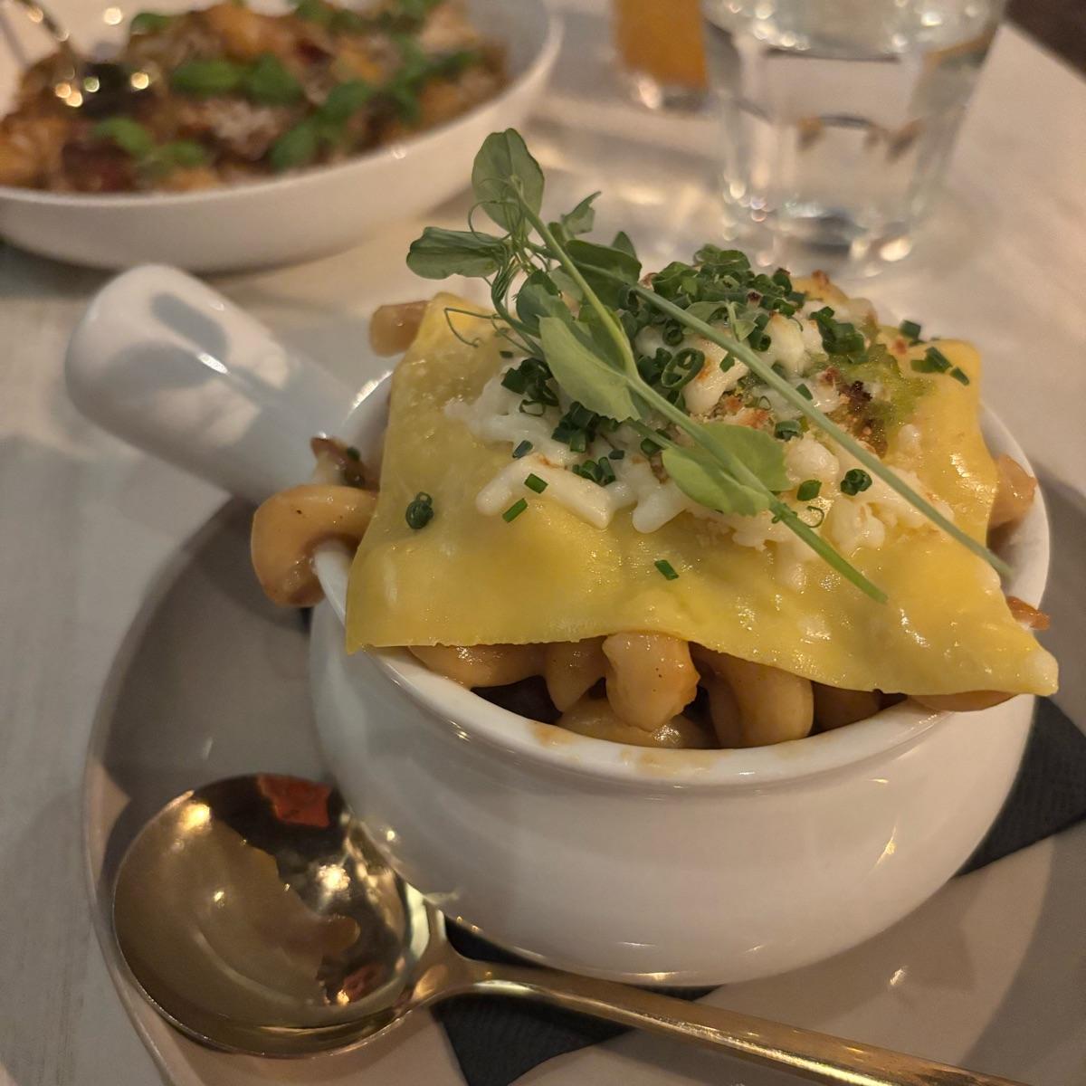 Onion soup taste with the caramelized onions and sauce, cheezy and creamy omggg it was SOOOO good !!! 🤤