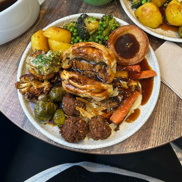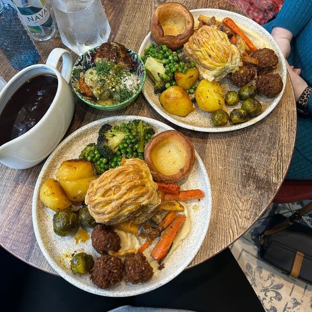 Finally got to have a roast dinner at Koocha Mezze, a Persian restaurant in Bristol. They are famous for their small plates (which are amazing) so we never make it for a roast but this was so worth it. If you haven’t been, please, go! You will thank me later. Incredible. This dinner had Zaatar root veggies, minty greens, sausage stuffing, parsnip puree & so much more. So good!