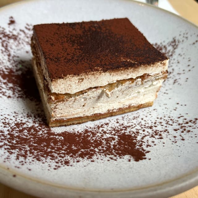 This #tiramisu was pretty good and very like the original. We had tried the tiramisu at Cafe Petiole which is the same as Tendril. That one is mind blowingly good. They call this one legendary here but it wasn’t making either of us sing. It has some coffee☕️ flavor, cream, and some kind of biscuits but it’s a bit stodgy maybe. It’s an #awardwinning #veganrestaurant 🌱here so I’m probably being very picky. It’s 8.5. The server said he preferred their cheesecake. #saveveganrestaurants #veganlondon #londoneats